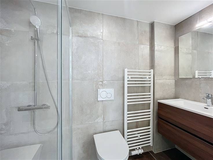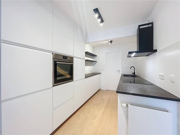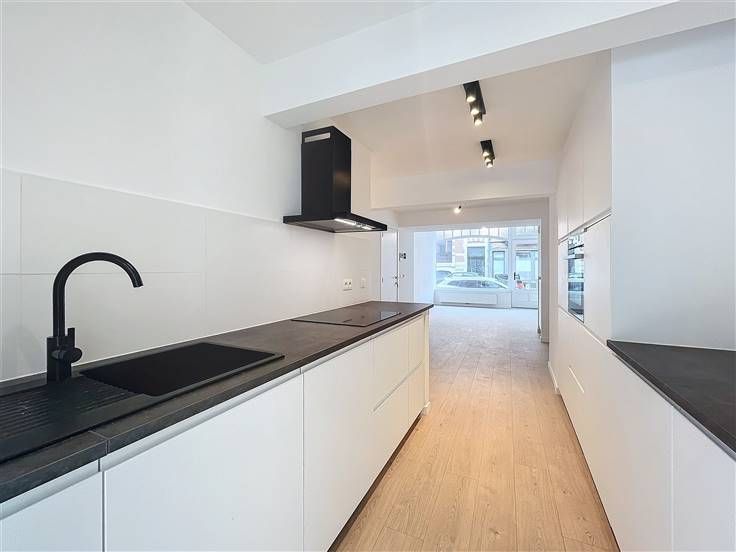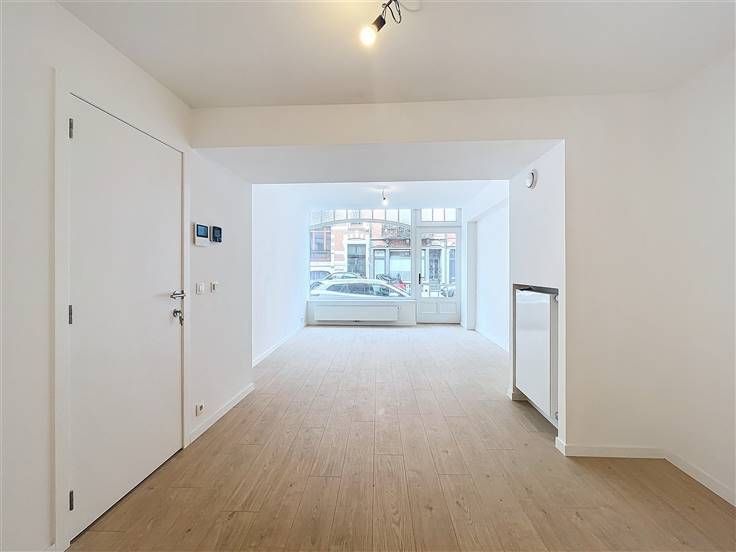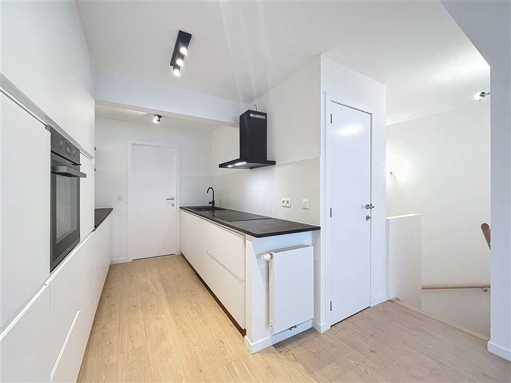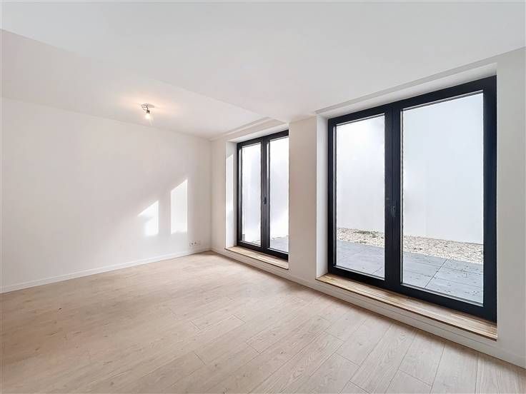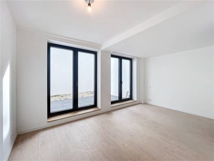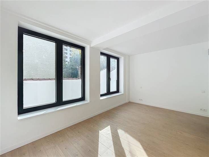 Quartier Montgomery - Schitterend duplex appartement met 2 slaapkamers van +/- 90m². Op de begane grond/5 verdiepingen: Een lichte woon/eetkamer van +/- 37m² uitgevend op een volledig ingerichte open keuken (koelkast met vriesvak, oven, kookplaat, afzuigkap en vaatwasser), een bijkeuken met ruimte voor een wasmachine, een gastentoilet, een slaapkamer van +/- 15m² met een aangrenzende doucheruimte. Op de benedenverdieping, een nachthal, een apart toilet, een ruime slaapkamer van +/- 18m² uitgevend op een tuin van +/- 25m², douchekamer. Voorzieningen en comfort: dubbele beglazing, videofoon, thermostaat, kelder, boiler met dubbele doorstroming. Bijkomende kosten: € 100/maand (onderhoud en elektriciteit voor gemeenschappelijke ruimtes). Beschikbaar per direct.