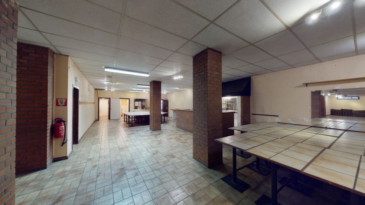 Ensemble immobilier comprenant une grande salle de fêtes d'environ 350 m², de sanitaires, et d'un espace prévu pour une cuisine ainsi qu'un entrepôt de près de 110 m².