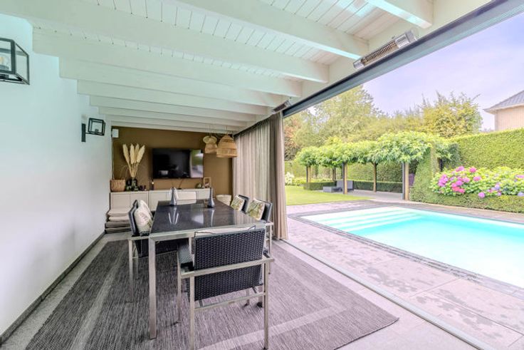 PLAN NU UW BEZOEK VIA JUDITH@PALTON.BE OF VIA 00324 93 30 52 65. Deze stijlvolle, tot in de puntjes afgewerkte villa is rustig gelegen op een perceel van 1.020m², op ideale locatie nabij bossen en op wandelafstand van centrum en scholen! Ontdek deze villa, een parel van ongeëvenaarde klasse. Deze biedt u alle comfort die u nodig heeft om te wonen, werken en te ontspannen.We betreden via de fraaie voordeurpartij de woning met de imposante inkomhal waar we toegang hebben tot vestiaire, toilet en het bureau.Via de dubbele deuren komt u in de living met een klassevolle vloer, hoge plafonds, grote raampartijen en zicht op de privacy biedende tuin met zwembad! Deze living met haard verleent toegang tot enerzijdsT V kamer dewelke afgesloten kan worden door 2 ensuite deuren en anderzijds tot de volledig geïnstalleerde recente keuken. Het bureau zorgt ervoor om met plezier vanuit huis te werken.Via de statige trap komt u in de nachthal waar 4 slpk en 2 badk zijn. Waarvan de master bedroom met openslaande deuren naar terras en de luxe dressing De 2 badkamers zijn volledig ingericht! Op de zolderverdieping, via vaste trap bereikbaar, treft u een polyvalente ruimte. Last but not least in de omheinde tuin met prachtige terrassen die aangelegd zijn met natuursteen is het heerlijk vertoeven. Om sportief te zijn of te ontspannen is er het zwembad, pool house en een ingerichte buitenkeuken! Kortom laat u betoveren door de charme en het comfort van deze villa.