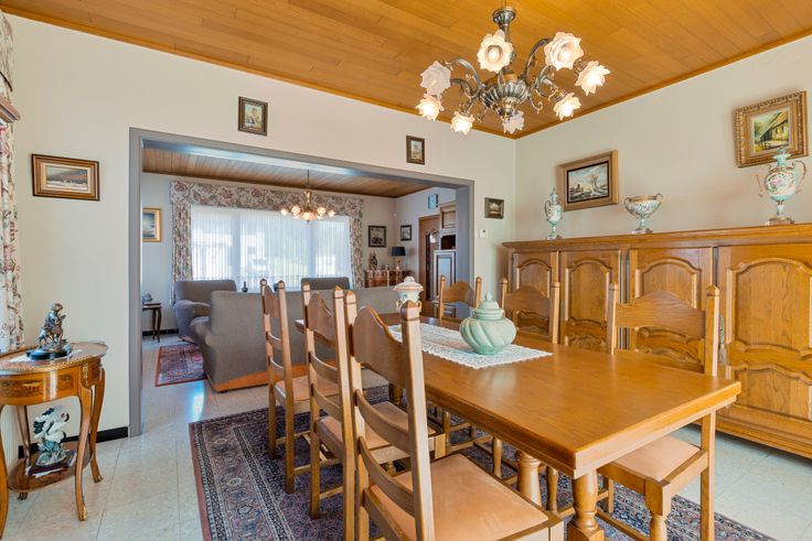 Solide perfect onderhouden OPEN BEBOUWING met garage en grote tuin gelegen op een totale grondoppervlakte van 18a 41ca. De woning is ingedeeld met inkom/gang met trap, ruime LICHTRIJKE leefruimte met salon en eetplaats, ingerichte keuken. Aansluitend aan de living en keuken bevindt zich een ruime veranda met mooi zicht op de zuiders gerichte goed onderhouden tuin. De veranda is eveneens voorzien van zonneluifel. Verder is er nog een middelmatige kelder, een garage en bergruimte. De weide achter de tuin is ideaal voor dierenliefhebbers. De bovenverdieping omvat nachthal, 3 slpks en een ingerichte badkamer. Alle ramen zijn voorzien van rolluiken. Centrale verwarming op stookolie. Interesse voor een bezoek : 0495/546550 Renovatieplicht: ja