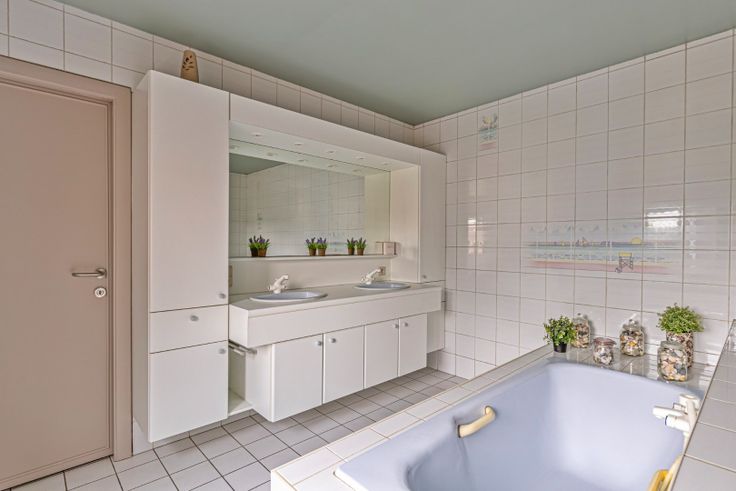 Op de verdieping geeft de nachthal uit op 2 ruime slaapkamers, een kinderkamer en een ruime badkamer met ligbad, douche, dubbele lavabo en toilet. Achter de badkamer is er nog een kamer, ideaal om bvb. in te richten als dressing.