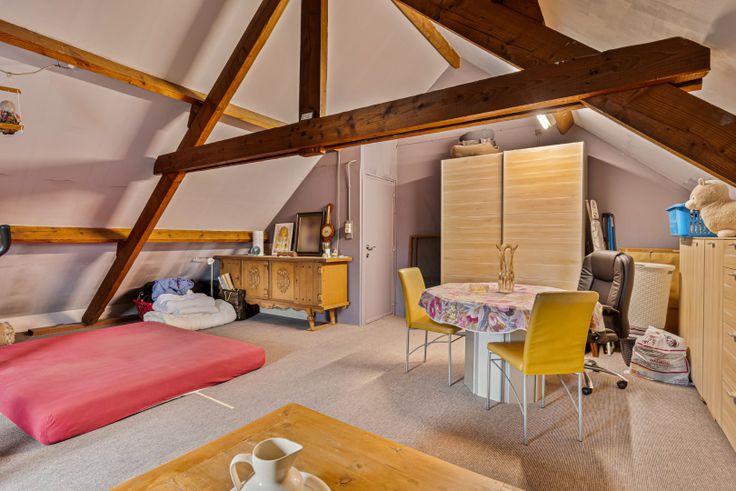 Een vaste trap geeft toegang tot de ruime zolderkamer, ideaal als extra slaapkamer, hobbyruimte, ... .