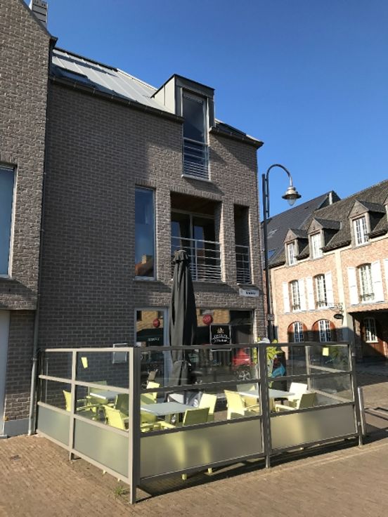 Centraal gelegen handelspand met garage (archief/magazijn) en duplex appartement met 3 kamers Centraal gelegen op het Kerkplein van Zingem. Op het gelijkvloers heeft men het handelspand met garage en toilet. Boven het handelspand is een prachtig duplex appartement met 3 kamers, ruime leefruimte, 2 terrassen, badkamer en apart toilet.