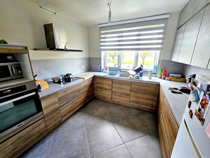 Composition : hall d'entrée, wc séparé, superbe living ouvert avec cuisine équipée d'environ 50m² comprenant salon et salle à manger. Espaces lumineux grâce à de belles baies vitrées et permettant d'accéder à l'extérieur. A l'étage vous serez accueilli par un hall de nuit distribuant sur 3 chambres et une salle de bain, wc. Au sous-sol de très bonnes caves, saines, et permettant également un accès à la cour. Grand jardin plat d'environ 200 m².