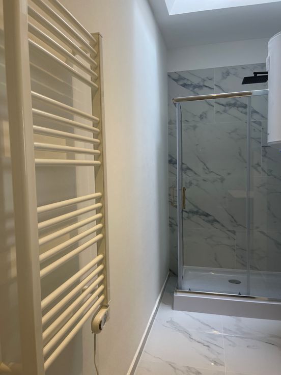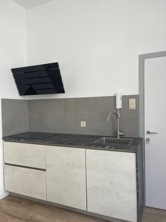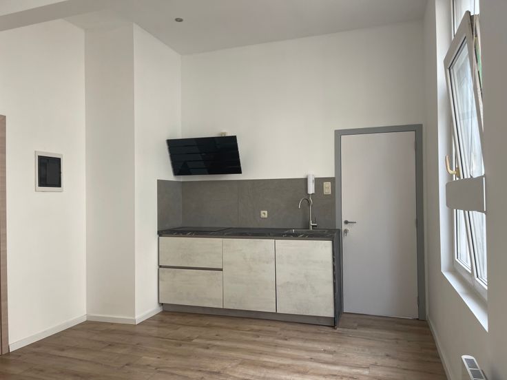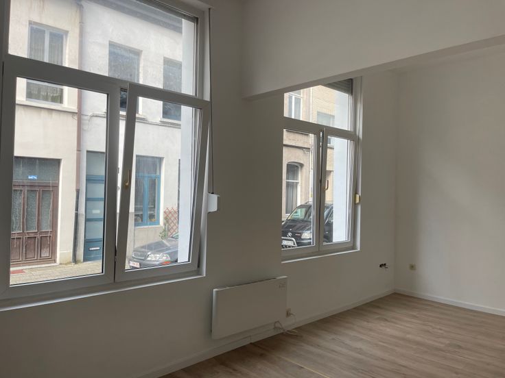 Deze ruime studio is gelegen in een kleinschalig totaal vernieuwd gebouw. De studio is op de gelijkvloerse verdieping en heeft hoge plafonds waardoor het super ruimtelijk aanvoelt. Er zijn grote hoge ramen waardoor er veel licht is. Rolluiken. Deze studio heeft een mooi uitgeruste keuken . Het is één grote ruimte waar je een slaaphoek in kan maken. Er is een grote badkamer met douche, lavabo met meubel, handdoek-droger en hang-toilet. De badkamer is volledig betegeld. Zeer gezellige sfeervolle studio. Mooie laminaatvloer. Instapklaar! Er is een gemeenschappelijke kelder. Geen vaste kosten. Individuele watermeter, gas/elektriciteitsmeter. Verwarming op warmte pomp voor verwarmen en koelen airco. Energiezuinig. Arei conforme elektriciteit. Geen asbest. Conformiteitsattest. WWW.domus-immobilien.be of voor een bezoek bel Irene 0475/653581