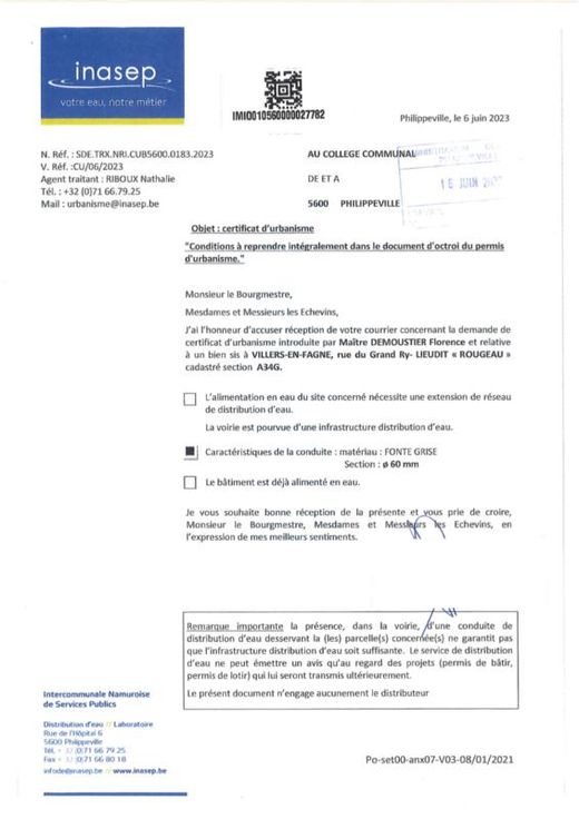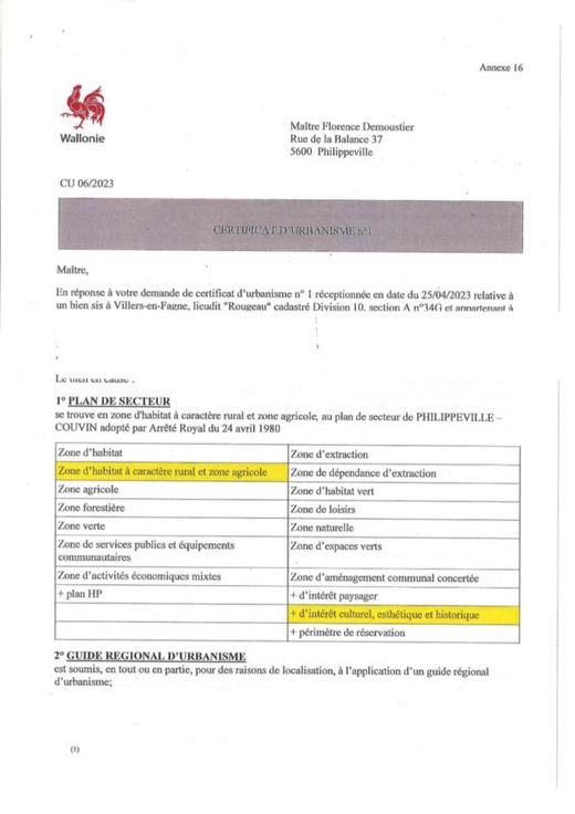 Dans le pittoresque village de Villers-en-Fagne, beau terrain à bâtir (A titre informatif, il est éventuellement possible de diviser le terrain pour une construction groupée suivant plan en pièce jointe, division non réalisée à ce jour). rue du Grand Ry à côté du n°10 Zone d'habitat à caractère rural et d'intérêt culturel, esthétique et historique