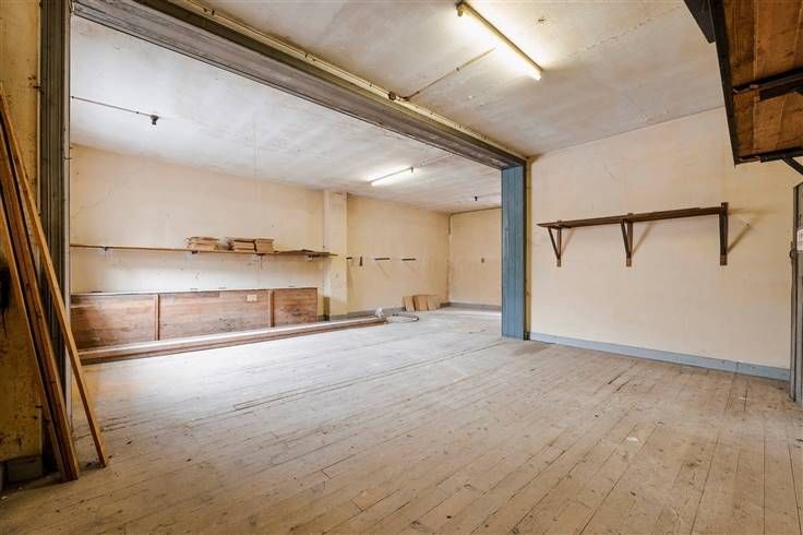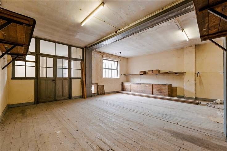 Binnen zijn de ruimten royaal en aanpasbaar, wat een grote flexibiliteit biedt om in te richten volgens uw specifieke behoeften. De houten vloeren en robuuste structuur van het gebouw herinneren aan de geschiedenis en vormen een solide basis voor moderne renovaties.