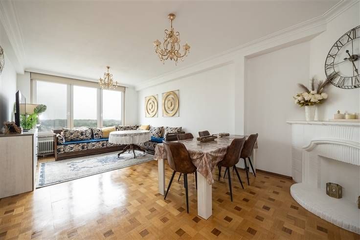 Verzorgd appartement op de 8ste verdieping met 2 slaapkamers en weids uitzicht net buiten de stad In een groot hoekgebouw net buiten de stad en vlakbij de A12, vind je op de achtste verdieping dit instapklare appartement. Je komt er binnen in de inkomhal, die een mooie donkerbruine laminaatvloer heeft en waar alle ruimtes op uitkomen. Door de dubbele deur ga je de leefruimte binnen, een lichte, gezellige plek vooraan op een authentieke parketvloer van maar liefst 30 m². Groot salon en eethoek? Geen probleem, want die kan je hier makkelijk kwijt! Van hieruit heb je toegang tot de aanpalende kwaliteitskeuken, die met z’n crèmekleurige kastjes, zwarte granieten werkblad, nostalgische dubbele spoelbak en spatwand van witte metrotegeltjes een knusse, landelijke look heeft. Je vindt hier alles wat je nodig hebt: een 5-punts gasfornuis met oven, dampkap, koelkast met diepvriezer, plaats voor een ingewerkte wasmachine en heel wat kastruimte. Weer in de hal, achter het apart toilet, heb je de gerenoveerde badkamer, met z’n leuke tegelvloer in zwart-wit dambordmotief, witte metrotegeltjes tegen de wand, ligbad met douchescherm, nostalgische, elegante lavabo met spiegel en zijkast en verluchting. De twee slaapkamers bevinden zich achteraan, waarvan de master bedroom ook toegang heeft tot het achterliggende terras, een toffe buitenplek with a view! Voor meer info: https://www.immovasta.be/panden/gegevens/13485/