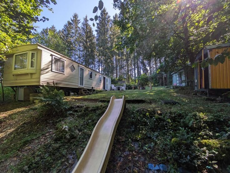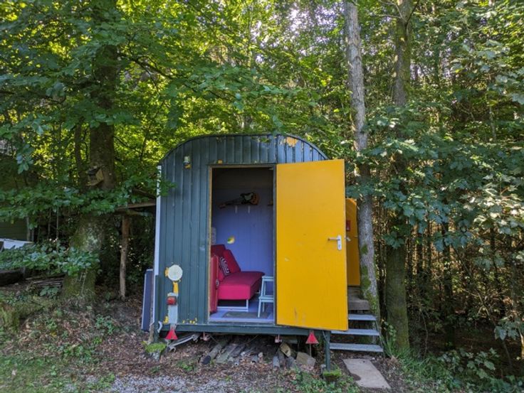 Het terrein is uitgerust met een stacaravan, een blokhut en een authentieke 'pipo'-wagen.