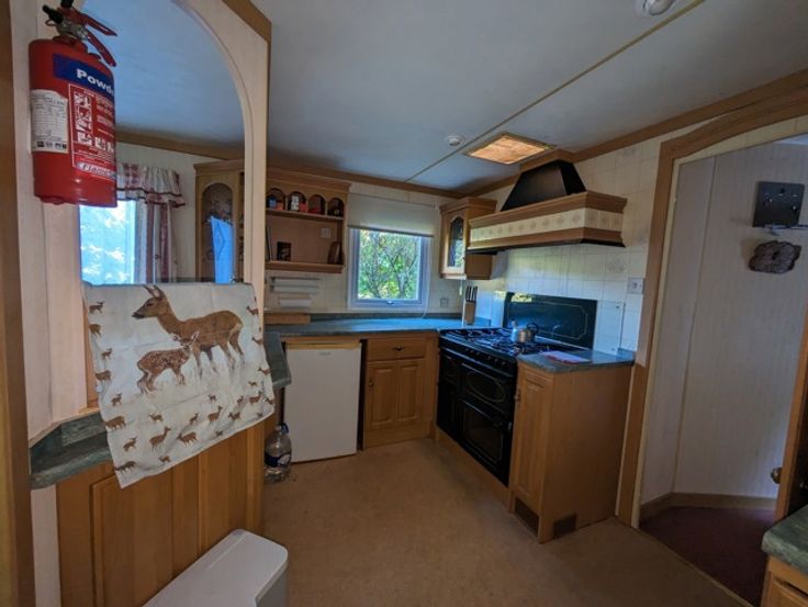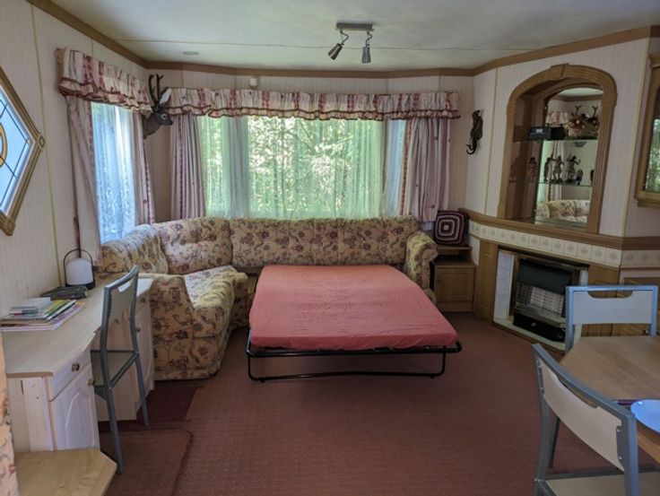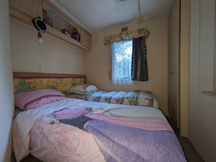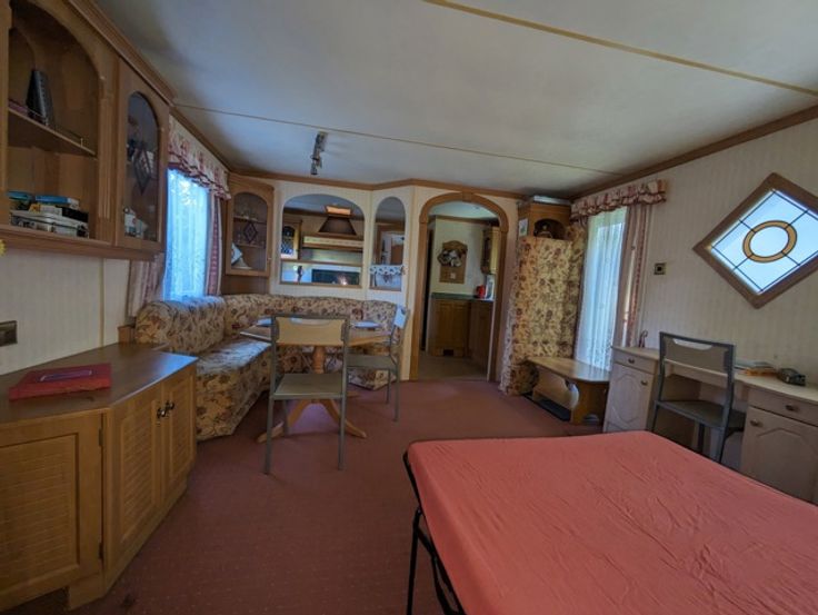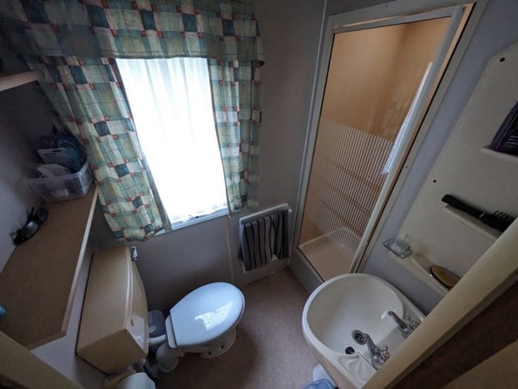• Stacaravan: Inkom, keuken, woonkamer met dubbel zetelbed, slaapkamer 1 met twee eenpersoonsbedden, slaapkamer 2 met dubbel bed, badkamer met toilet en douche, bergruimte met boiler.