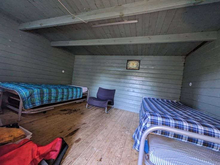 • Blokhut: Twee eenpersoonsbedden + twee uitklapbare eenpersoonsbedden.