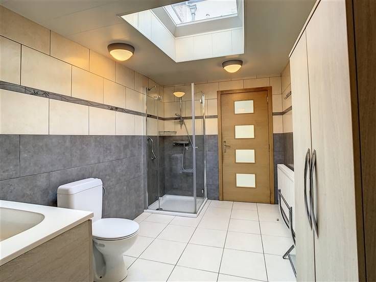 Sorry er is geen nederlandse vertaling beschikbaar. Loué ! Clabecq. Idéalement située à proximité des transports. Spacieuse maison très bien aménagée dans un état impeccable disposant de 3 chambres et un bureau. Celle-ci se compose d'un lumineux séjour carrelé de 33 m² vers la grande cuisine équipée de 13m² (frigo, taque vitro-céramique, lave vaisselle, rangements) et le cellier. Petite cour couverte de 7 m² pouvant servir de bureau ou de pièce de rangement avec accès à l'extérieur via allée latérale. Une belle salle de douche de 8 m² récemment rénovée et entièrement carrelée équipée d'une cabine de douche, d'un wc et d'un meuble évier avec miroir. Buanderie/chaufferie de 13 m². A l'étage, deux belles chambres sous parquet de 15 et 14 m² dont une avec grand placard encastré, un Wc. A l'étage supérieur, sous Vélux, une belle chambre de 17 m² et un bureau de 9 m² avec espace de rangement. Double vitrage PVC, cc au gaz (chaudière récente). PEB B (27 868 kWh/an - 146 kWh/m².an). Peb No 20200618011430. Loyer : 950€. Plus d'infos et visites au 02 355 50 55.
