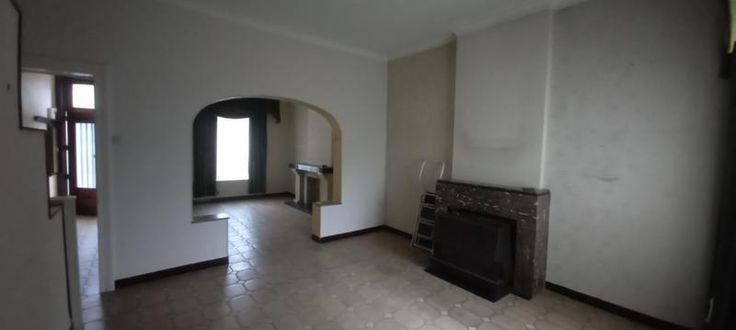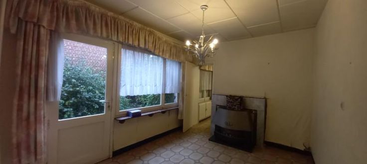 Bonne maison 3 façades avec passage latéral et jardin Rez : hall d'entrée, living, cuisine avec pièce dînatoire, salle de bain. 1er étage : hall de nuit, 3 chambres individuelles. Grenier aménageable, cave, chauffage poêle au gaz, châssis simple vitrage avec volet