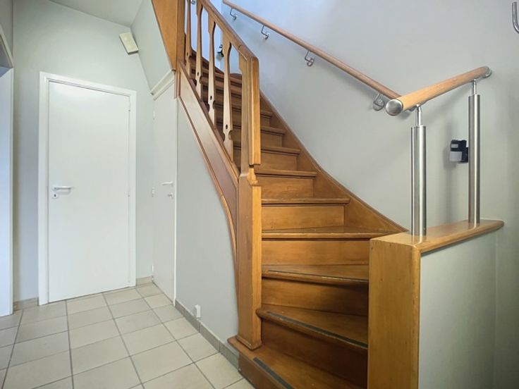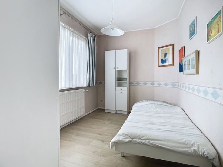 Dans une rue calme (en cul-de-sac), ne manquez pas cette agréable maison en très bon état général située à proximité de tous les commodités (commerces, transports en communs, ...) ! Elle se compose, en rez-de-chaussée, d'un hall d'entrée, d'une toilette, d'un beau séjour de 32 m2, d'une cuisine équipée. Le 1er étage comprend un hall de nuit, 2 chambres et une salle de bains (bain, douche, wc, lavabo). Caves au sous-sol. Beau jardin plat sans vis-à-vis. Parking à l'avant de la maison. Chauffage central au gaz de ville (chaudière Buderus récente), châssis double vitrage, compteur bihoraire. RC réduit : 671 euros. PEB classe C ! A visiter sans tarder ! Plus d'infos et prise de rdv au 04/222.21.21.