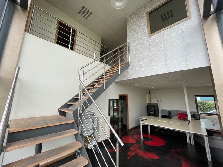 De kantoorruimte beslaat 2 verdiepingen en kan gebruikt worden als kantoor/ showroom/vergaderzaal/receptie.
