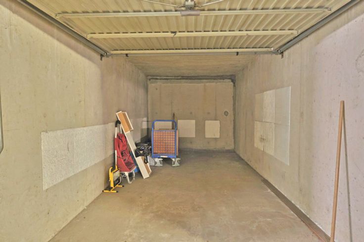 De garagebox beschikt over een manuele kantelpoort en heeft een totale breedte van 2,5 m en een diepte van 5 m.