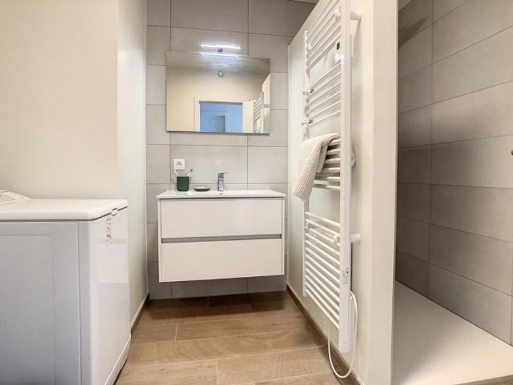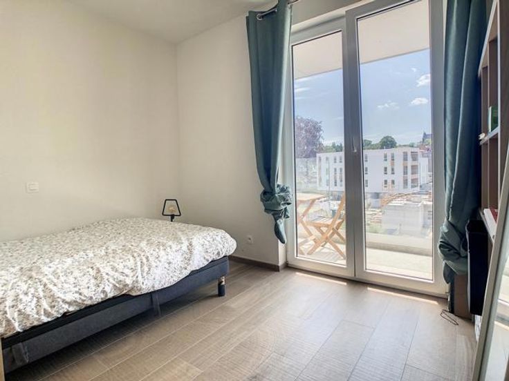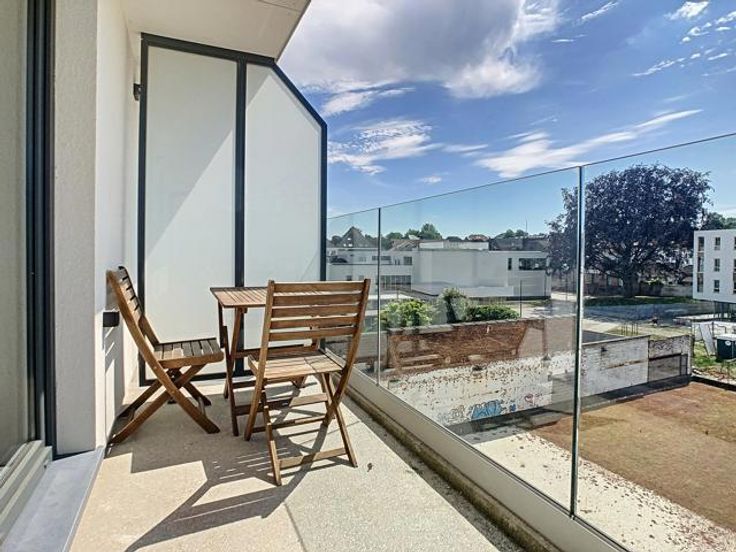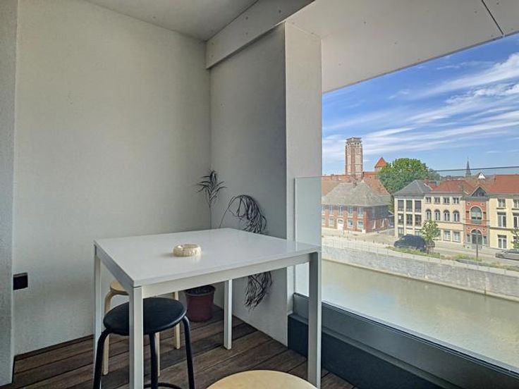 Sur les quais rénovés de Tournai, très bel appartement neuf situé au 3ème étage, avec vue exceptionnelle sur l’Escaut, comprenant : Un hall d’entrée, un séjour avec cuisine ouverte totalement équipée (meubles de rangement, four, micro-onde, lave-vaisselle, frigo, petit congélateur, évier), un hall de nuit desservant 2 chambres dont une avec une terrasse, une salle de douche (meuble simple vasque, douche), un wc, une buanderie avec installation machine à laver Double vitrage, chauffage par le sol, ventilation double flux, vidéophone. Ascenseur dans la résidence. Cave et emplacement de parking couvert et sécurisé. Aspects énergétiques: PEB n° 20210208502359 - Espec: 47 kWh/m².an - E totale: 3895 kWh/an Disponible au 01/01/2025 Loyer: 925€ + 75€ de charges communes + 75 € de garage