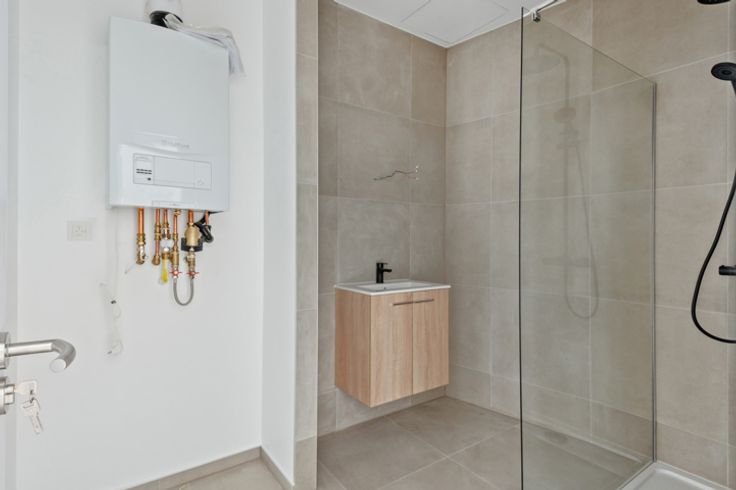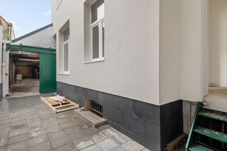 Direct verbonden met het kantoor is er een ruim magazijn van 94 m², ideaal voor opslag of werkruimte. Dit magazijn biedt tal van mogelijkheden voor bedrijven die nood hebben aan een praktische opslagplaats naast hun kantoor. De combinatie van kantoor en magazijn maakt dit pand flexibel en aantrekkelijk voor verschillende sectoren.