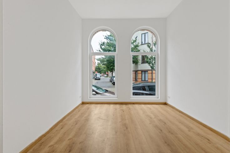 Bij binnenkomst betreed je een lichte kantoorruimte, perfect voor een open werkruimte, showroom, of dienstverlenend bedrijf. Dankzij de ramen geniet je van natuurlijk licht, wat een aangename en productieve werkomgeving creëert.