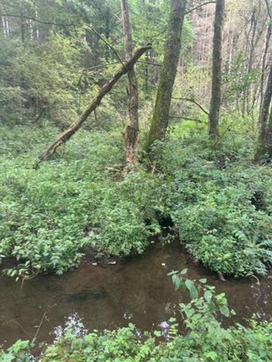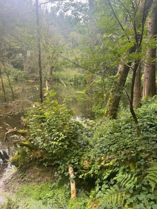 Parcelles légèrement pentues et traversées par un ruisseau avec une très belle mare naturelle dans le fond d'une des parcelles.