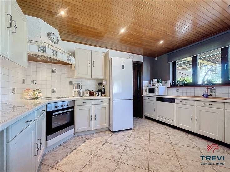 In het mooie dorpje Twee-Akren ligt deze prachtige villa, ideaal om in alle rust van het platteland te leven. Het harmonieuze, goed gestructureerde huis bestaat uit een hal van 10 m² met gastentoilet. Een grote betegelde woonkamer van 37 m² met een houtkachel in een prachtige bakstenen open haard, een volledig uitgeruste open keuken van 12 m² en grote ramen die uitkijken op de prachtige tuin op het zuiden. Een bijkeuken van 9 m² met een sportdouche en de grote garage van 24 m² maken de begane grond compleet. De eerste verdieping bestaat uit 3 slaapkamers en een badkamer. De grote slaapkamer van 20 m² heeft een zithoek en een aparte kleedkamer. Er zijn nog 2 slaapkamers van 12 en 10 m². De badkamer van 9 m² heeft een bad, douchecabine, toilet en dubbele wastafel. Zolder voor opslag. Centrale verwarming op mazout (nieuwe Viessman ketel). Regenwatertank. Camera's en alarmsysteem. Tuinhuisjes. EPC C. Conforme elektriciteit. Doe een bod vanaf 350.000. Informatie en bezoek op 02/355.50.55.