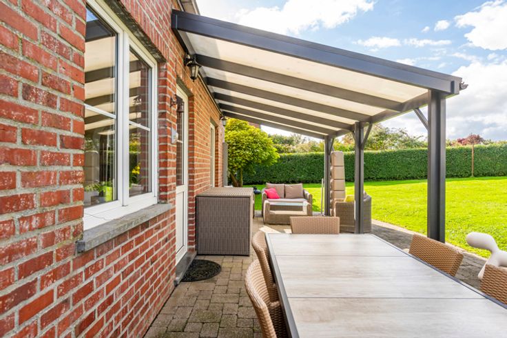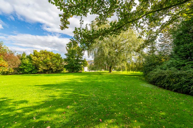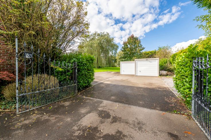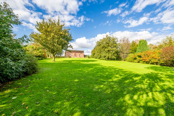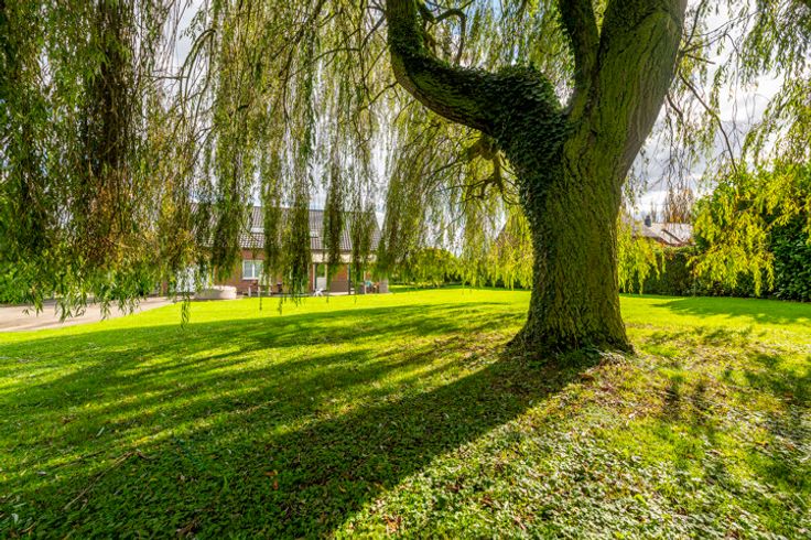 Buitenzijde: zeer grote vrije tuin van bijna 3500m² met robotgrasmaaier, terras met pergola, diverse parkeerplaatsen op de oprit, dubbele garage (prefab) met automatische sectionaaldeuren en tuinhuisje/werkplaats.