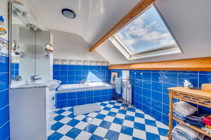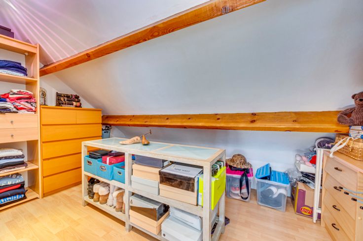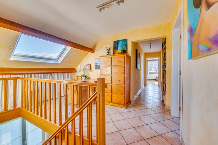 Boven: nachthal, 4 slaapkamers van respectievelijk 10, 13, 20 (met kleedruimte) en 30m² en een badkamer (ligbad, wastafel, toilet).