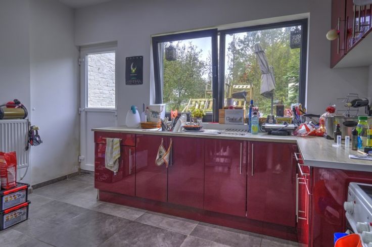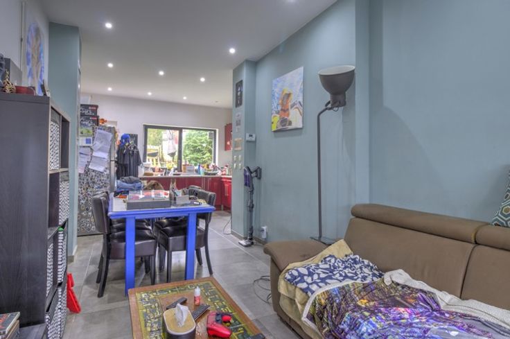 BUNGALOW A RAFRAICHIR SUR LES HAUTEURS DE CHENEE - COMPOSITION / Rez-de-chaussée : hall d'entrée de 10m², deux chambres de 10m² - 11m², salle de douche de 5m² (évier, douche, toilettes, meuble de rangement), salon de 16m², cuisine équipée de 13m² (évier, hotte, rangements), un garage de 32 m², une buanderie de 10m² , un espace de rangement de 6m², un jardin de +/- 85m², possibilité d'aménager une terrasse au niveau de la façade avant - DIVERS : Châssis double vitrage PVC, maison rénovée en 2019, boiler et chaudière datant de 2019, plafonds isolés, volets manuels, RCNI : 430,76€, parcelle de 239m².