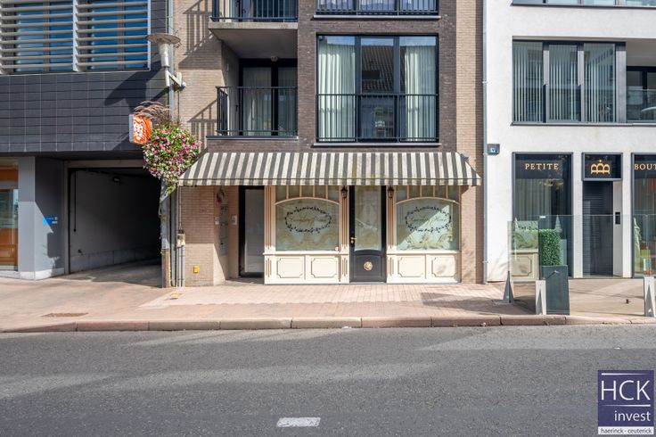 Als bijkomende troef is er de mogelijkheid tot gebruik van een terras vooraan het pand. Een andere bestemming dan horeca (cf. de statuten van het gebouw) is uiteraard steeds mogelijk.