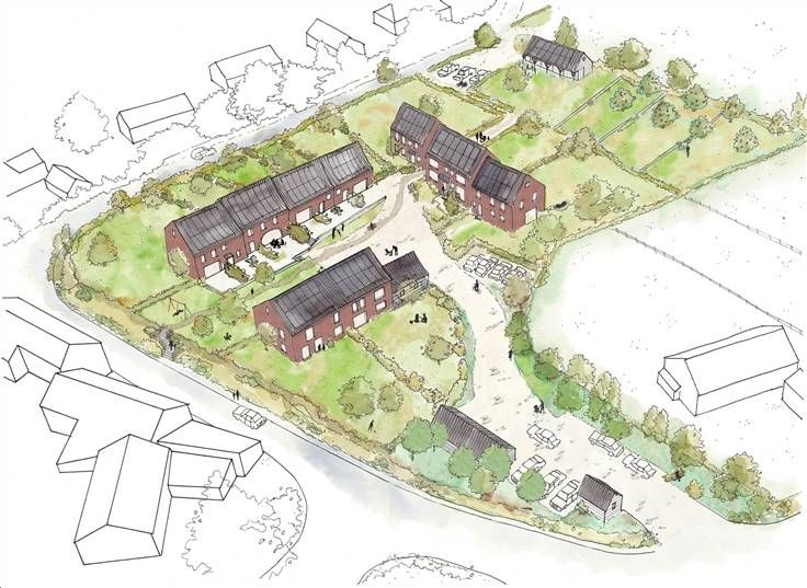 Le clos comprend une cour centrale, une maison commune, un terrain pour un projet commun (potager, verger...), 2 locaux à vélos et des zones de stationnement.