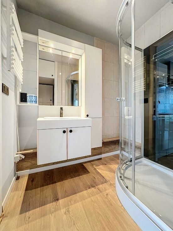 Indeling: inkomhal, slaaphoek, leefruimte, open keuken, badkamer met douchecel, slaapkamer.