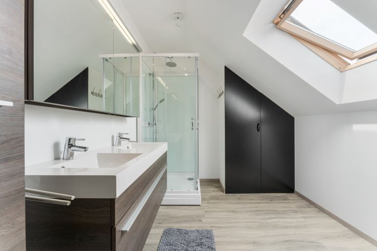 De eerste verdieping beschikt over een woonkamer met een vernieuwde open keuken en laminaatvloer. De keuken is voorzien van een keramische kookplaat, dampkap en oven. De ramen zijn vervangen door PVC schrijnwerk met hoogrendementsbeglazing. Op deze verdieping bevindt zich ook een ruime slaapkamer van 12;5 m². Er is mogelijkheid om een extra terras te creëren. De dakverdieping is voorzien van een vernieuwde badkamer met douche, was