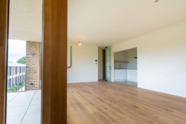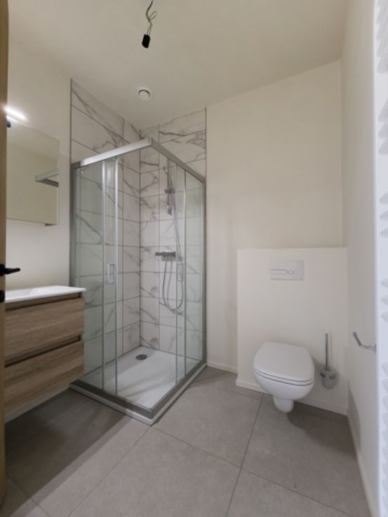 Het appartement is gelegen op de 1ste verdieping van het gebouw. Er is een lift. Een ruime inkomhal met apart toilet en douchekamer.  Het appartement heeft een ideale oriëntatie (oosterzon in de leef en slaapruimte). Uniek zicht op het natuurgebied. Het is er rustig. 3 slaapkamers. Daar het appartement op een hoek is gelegen wordt de leefruimte omgeven door ramen. Het zorgt voor veel natuurlijke lichtinval en een mooi uitzicht op het park. Het betreft een open leefruimte met aansluitend keuken. De keuken is volledig geïnstalleerd met de nieuwste apparaten met daarnaast de meest zuinige koel-vries combinatie. De leefruimte geeft toegang tot het terras. De groene bijna energieneutrale woonsite maakt deel uit van een park met beschermd natuurgebied en ligt op 500 meter van het commerciële centrum van Wilrijk. Van hieruit is het maar tien minuten rijden naar Antwerpen en slechts enkele minuten van de A12 of de E19 richting Brussel. Er is een fietsenstalling met oplaadpunten voor elektrische fietsen. Provisie voor gemeenschappelijke lasten, warm water en verwarming is 200€/maand. Mogelijkheid tot het huren van een parkeerplaats in het gebouw tegen 100€/maand.