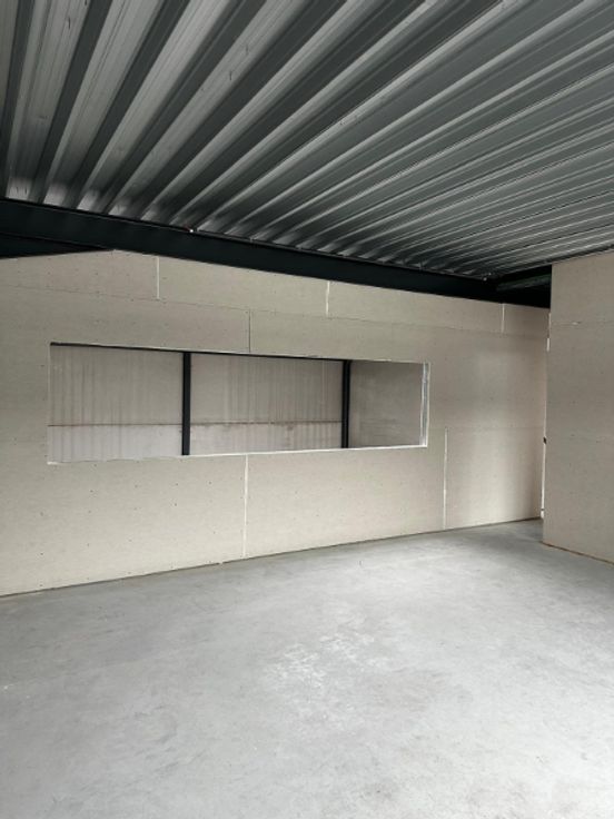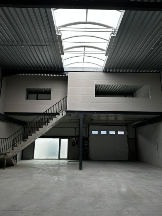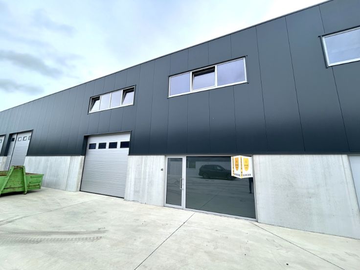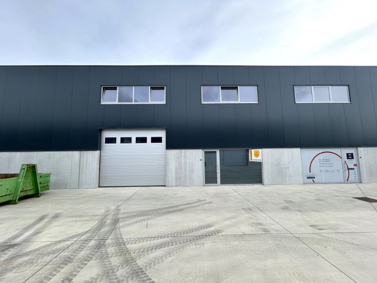Het gebouw is geïsoleerd en opgebouwd uit een stevige staalstructuur met duurzame betonpanelen. De voorgevel bestaat uit een betonnen plint van 2 meter hoog, met daarboven geïsoleerde sandwichpanelen en verschillende ramen die zorgen voor extra lichtinval. Daarnaast beschikt de unit over een dak in steeldeck, een sectionale poort met aparte toegangsdeur, een gepolierde betonvloer en een lichtstraat, waardoor de ruimte baadt in natuurlijk licht.