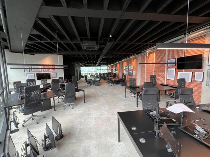 Dit moderne kantoorgebouw aan de vernieuwde Leien beschikt over een recent geïsoleerde glazen gevel en is ideaal gelegen tegenover de Nationale Bank van België, met als extra gemak een ondergrondse parkeergelegenheid. Het volledig gerenoveerde en instapklare kantoor biedt 25 ingerichte werkplekken, voorzien van ergonomische bureaustoelen, monitorarmen, computerschermen en opberglades. De ruimte is sfeervol aangekleed met groene beplanting en moderne tv-schermen, terwijl extra faciliteiten zoals een pingpongtafel en eettafels bijdragen aan een dynamische en stimulerende werkomgeving. Vanuit het kantoor heeft u een prachtig uitzicht over de skyline van Antwerpen.