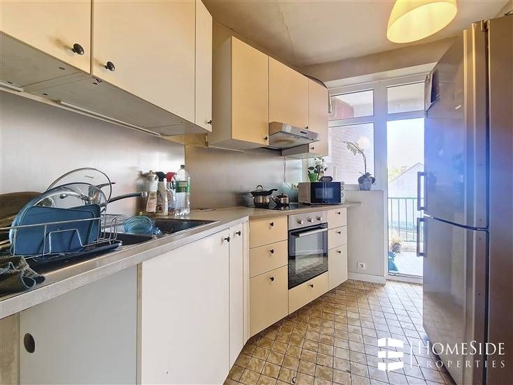 Sorry er is geen nederlandse vertaling beschikbaar. Quartier Brabant, proche des grands axes, des commerces et des transports (bus, tram, métro, train). Lumineux appartement de +/-70m² en bon état !! Au 5ème étage/ 6 étages (avec ascenseur) Il se compose d'un hall d'entrée avec placard, un spacieux et lumineux séjour, une cuisine équipée (four, taques, hotte, placards, évier), une belle chambre avec placard, une salle de bains avec emplacement pour machine à laver, un WC séparé et une BELLE TERRASSE. Au sous-sol : Une cave privative (n°5). Charges (base 2023) : 125€/mois (Assurance collective, entretien et électricité des communs, ascenseur, syndic) + Fond de réserve : 55€/mois. Chaudière individuelle au gaz - 2018, Porte blindée, Parlophonie, Double vitrage en PVC, ELECTRICITE CONFORME JUSQU'EN 2042 L'appartement est actuellement loué 726,43€/mois + 75€/mois (charges) - Depuis le 01/04/2018 A ne pas manquer!! Informations et visites au 02.567.96.74 ou sur www.HOMESIDE.be