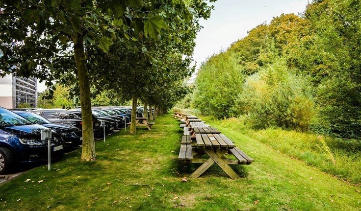 Ligging: vlot bereikbaar via E17xE40 (klaverblad), met goede visibiliteit van op E17; bushalte voor het gebouw