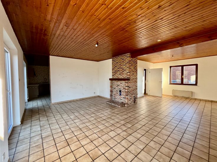 Twins-Immo agence à 1,21% de commission tvac* a le plaisir de vous présenter cette villa 4 façades à rénover. Elle se compose au rez: d’un hall d’entrée, d’un spacieux living ouvert, et d’une cuisine. Au 1er vous trouverez 3 chambres, une SDB, et un grenier aménageable, idéal pour un dressing ou bureau. Vous profiterez également d’un double garage. Le tout reposant sur une parcelle de plus de 1000m2. Atout: rc modeste; possibilité droits d’enregistrement réduits. Chassis PVC DV + bois DV, chauffage et boiler elec, elec bi-horaire à revoir.