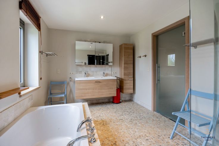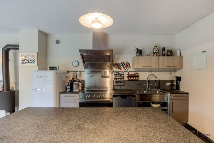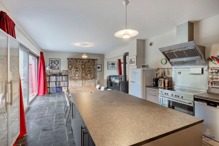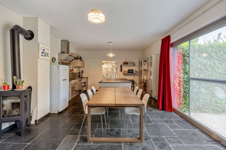 Prachtige open bebouwing met 4 slaapkamers. In het landelijke Kerkom, een deelgemeente van Sint-Truiden, vinden we naast eindeloos wandel- en fietsplezier – mét welverdiende pauze bij de lokale brouwerij – deze prachtige open bebouwing. De sleutelwoorden hier zijn: privacy, ruimte en comfort. Kijk even mee! Deze woning dateert oorspronkelijk uit 1987. Ze onderging echter een grondige renovatie, waardoor ze tegemoetkomt aan alle noden van een hedendaags gezin. Bijzondere keuken Al vanaf de eerste stap in de ruime inkomhal, merk je dat deze woning gerenoveerd werd met kennis van zaken. Een fraaie natuurstenen vloer, optimaal gebruik van de beschikbare ruimte en veel invallend daglicht zorgen ervoor dat niks in deze woning nog ‘eighties’ aanvoelt. De knusse woonkamer leidt naar een plek die de doorgewinterde hobbykok zal doen watertanden: de bijzondere ‘industriële’ keuken. Hier kun je je innerlijke Sergio Herman naar hartenlust de vrije loop laten. Voor het hele gezin Op de benedenverdieping bevinden zich verder nog een handige voorraadkamer, een apart toilet, een slaapkamer met dressing – die prima als praktijk- of bureauruimte kan worden ingelijfd – en een ruime badkamer met inloopdouche, bad en twee lavabo’s. Op de eerste verdieping zet het ruimtelijk gevoel zich verder. Drie grote slaapkamers, waarvan eentje voorzien kan worden van een dressing, bieden ruimte genoeg voor het gezin. De handige douchekamer is ideaal om de drukke ‘ochtendspit... Renovatieplicht: onbekend