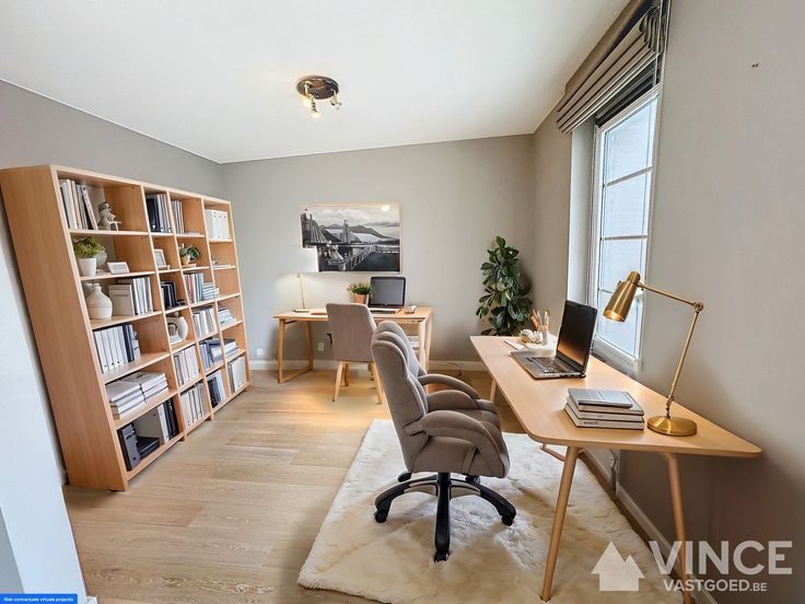 De tweede slaapkamer werd gebruikt als bureau en kan eenvoudig terug omgebouwd worden tot een volwaardige slaapkamer, wat flexibiliteit biedt voor jouw woonsituatie.
