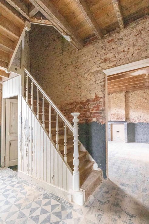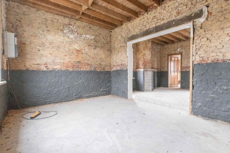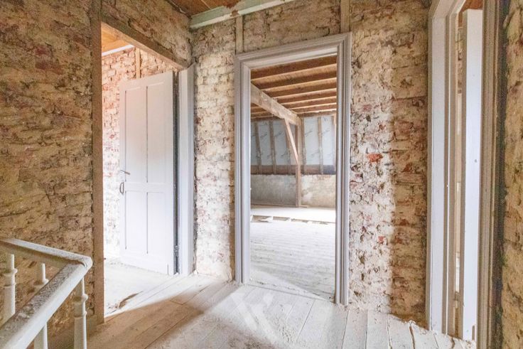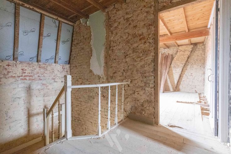 Momenteel is de binnenkant van het hoofdgebouw al zo goed als gestript, klaar om te starten. De muren werden al ontdaan van leemwerk, en intussen ook al geïnjecteerd en behandeld tegen vocht. Algemeen is de kast van het huis, dus zéker nog her te gebruiken!
