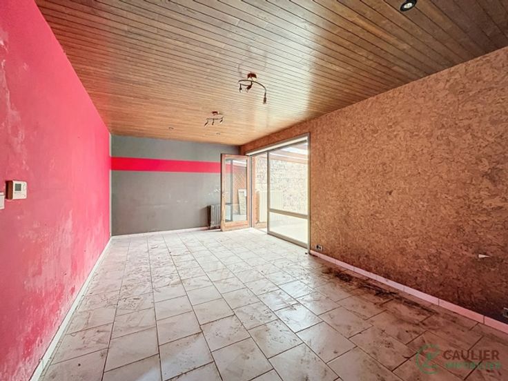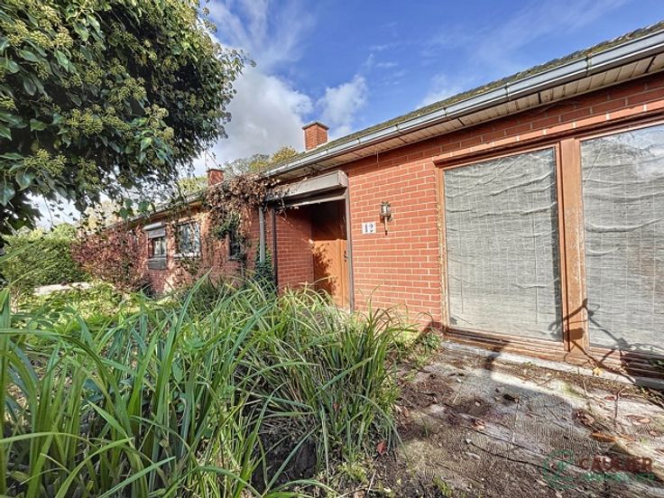 cette maison plain pied se constitue comme suit  :  living, salle à manger, espace cuisine, Hall de nuit, 3 chambres, salle de douche, veranda. Extérieure : jardin et garage !!! Information pratique !!! - Chauffage : gaz - électricité non conforme - Revenu cadastral :  Pour tout complément d'information ou pour programmer une visite :  Florian Caulier : 0492/76.58.78 Florian@caulier-immo.be
