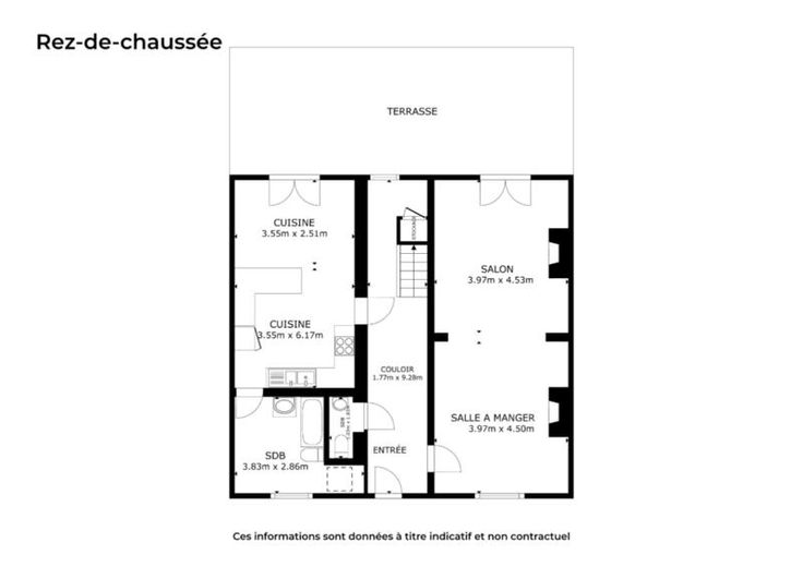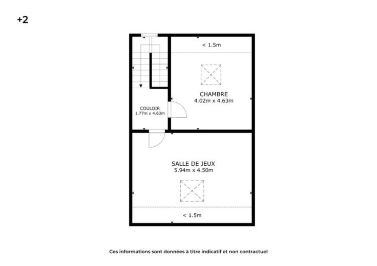 Composition : Rez : Hall d'entrée, salle de bains, salon, salle à manger, cuisine équipée, terrasse, jardin. 1er étage : couloir et 3 chambres. 2ème étage : couloir, chambre et salle de jeux.
