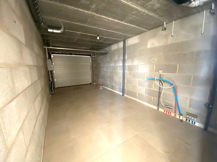 - Au rez-de-chaussée : un hall d'entrée, un grand séjour avec une cuisine équipée ( frigo, four, hotte, plaque vitrocéramique, lave-vaisselle ), un grand jardin avec terrasse, et un garage/ buanderie.