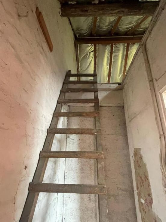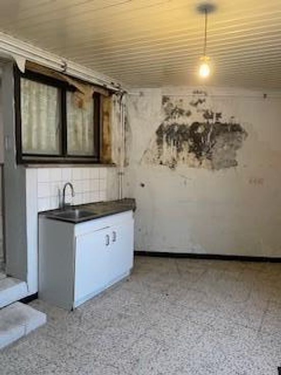 Ce bien est vendu par internet à partir du 14/11/2024 jusqu'au 22/11/2024. comprenant au rez de chaussée : un salon/salle à manger (30m²); cuisine (20m²); wc (1m²); vestiaire (3m²); salle de bain avec canalisations et boilers récents (6m²). Au 1er palier (2m²) : 2 chambres de (14m²) et (12m²). Grenier (+- 15 m²) : accessible par échelle rudimentaire.