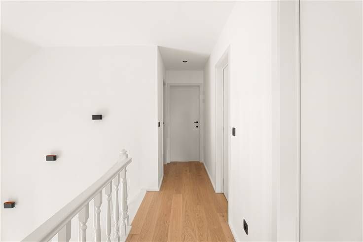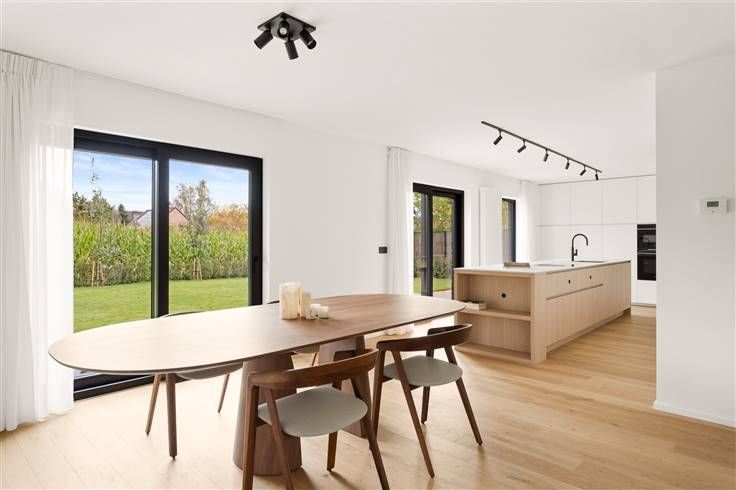 Deze instapklare woning, gelegen in een kindvriendelijke straat in Sint-Martens-Latem, bevindt zich op een perceel van 962 m² en heeft een bewoonbare oppervlakte van 245 m². Voor deze totale verbouwing werd er gebruik gemaakt van duurzame materialen en licht kleurenpalet. De gezellige living en eetkamer met zicht op de groene omgeving zorgen voor een open, lichtrijke en natuurlijke sfeer. De moderne, open keuken is volledig uitgerust met hoogwaardige Siemens-toestellen en biedt veel opbergruimte. Naast de keuken bevindt zich een praktische wasruimte, die doorloopt naar een aparte bureauruimte. Er is tevens een mooie wijnkelder voorzien. Op de eerste verdieping bevinden zich drie slaapkamers, waarvan één voorzien is van een dressing. De centraal gelegen badkamer beschikt over een ligbad en een inloopdouche. Als extra is er nog een kamer die kan dienen als bureau, opbergruimte of speelkamer. Eén van de grootste troeven van deze woning zijn de op maat gemaakte inbouwkasten, die in elke ruimte aanwezig zijn en zorgen voor een strakke afwerking. De op maat gemaakte gordijnen en de indirecte verlichting versterken de warme, huiselijke sfeer doorheen de hele woning. De perfect georiënteerde en onderhoudsvriendelijke tuin wordt verzorgd door een automatische grasrobot en geniet van volledige privacy. Het uitzicht op de achterliggende velden zorgt voor een extra landelijk gevoel. Buiten is er ook voldoende parkeergelegenheid voorzien. Ideaal gelegen