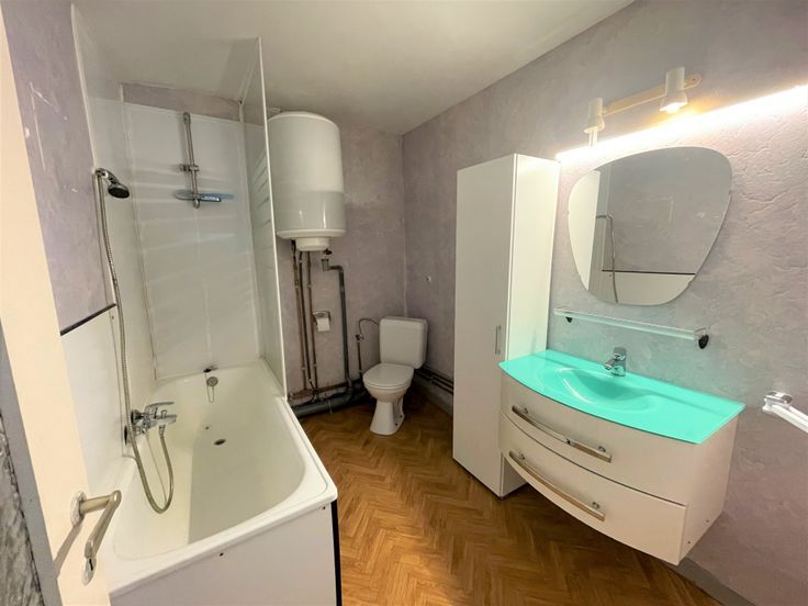 Maison à louer dans le coeur de Patignies, un village de la commune de Gedinne. Celle-ci dispose d'un séjour avec une cuisine équipée ( frigo, four, hotte, plaque vitrocéramique, lave-vaisselle ), d'un WC, d'un garage. A l'étage d'une salle de bains et de 2 chambres et une pièce débarras. Chauffage Mazout Pour toute demande de visite, merci de me revenir par mail à info@valonis.be en me décrivant votre profil au mieux afin que l'on convienne à un rendez-vous.