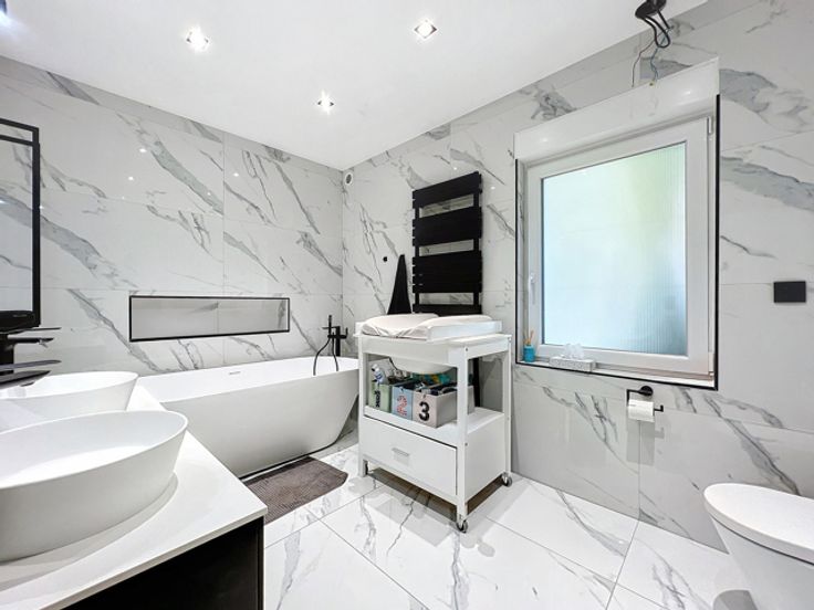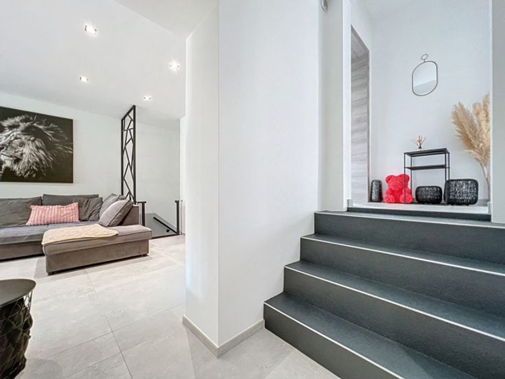 Les avantages: Proche des commodités, entièrement rénovée en 2021, terrasse + jardin, chaudière mazout + pompe à chaleur, volets électriques, alarme, porte de garage sectionnelle automatisée, électricité conforme, chauffage au sol, air conditionné.