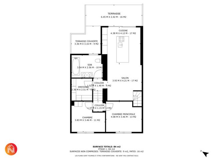 L'étage est un véritable coup de cœur : un vaste espace de vie baigné de lumière de 34 m² vous attend, avec un séjour chaleureux et une cuisine ouverte, entièrement équipée, qui invite à la convivialité. Cet espace donne directement sur une terrasse accueillante et un joli jardin, parfaits pour profiter des beaux jours. Une pièce polyvalente, idéale pour un bureau ou un dressing, ainsi qu'une salle de bain contemporaine viennent compléter ce niveau.