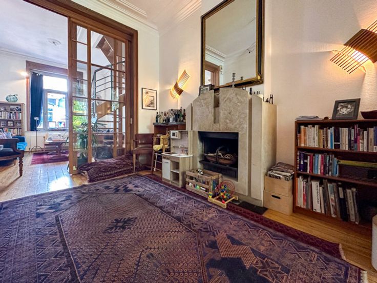 ELSENE, tussen de Châtelain en het Brugmannplein, dit aangename duplex APPARTEMENT (2 slpk/2bad) biedt 170 m² woonruimte op de begane grond van een typisch Brussels herenhuis. Op de begane grond bestaat uit een eetkamer van 20 m² met een ingerichte keuken, een dubbele woonkamer van 35 m² met een open haard. In het souplex achteraan leidt een kantoor of leefruimte naar de tuin van 32 m² op het zuidoosten. 1e verdieping: grote slaapkamer, 6 m² terras, aparte badkamer, toilet, tweede slaapkamer met aangrenzende doucheruimte. Wasserij. Gemeenschappelijke kelder. Water en gemeenschappelijke kosten: €50. Individuele verwarming. PEB F. Te zien bij L&P !